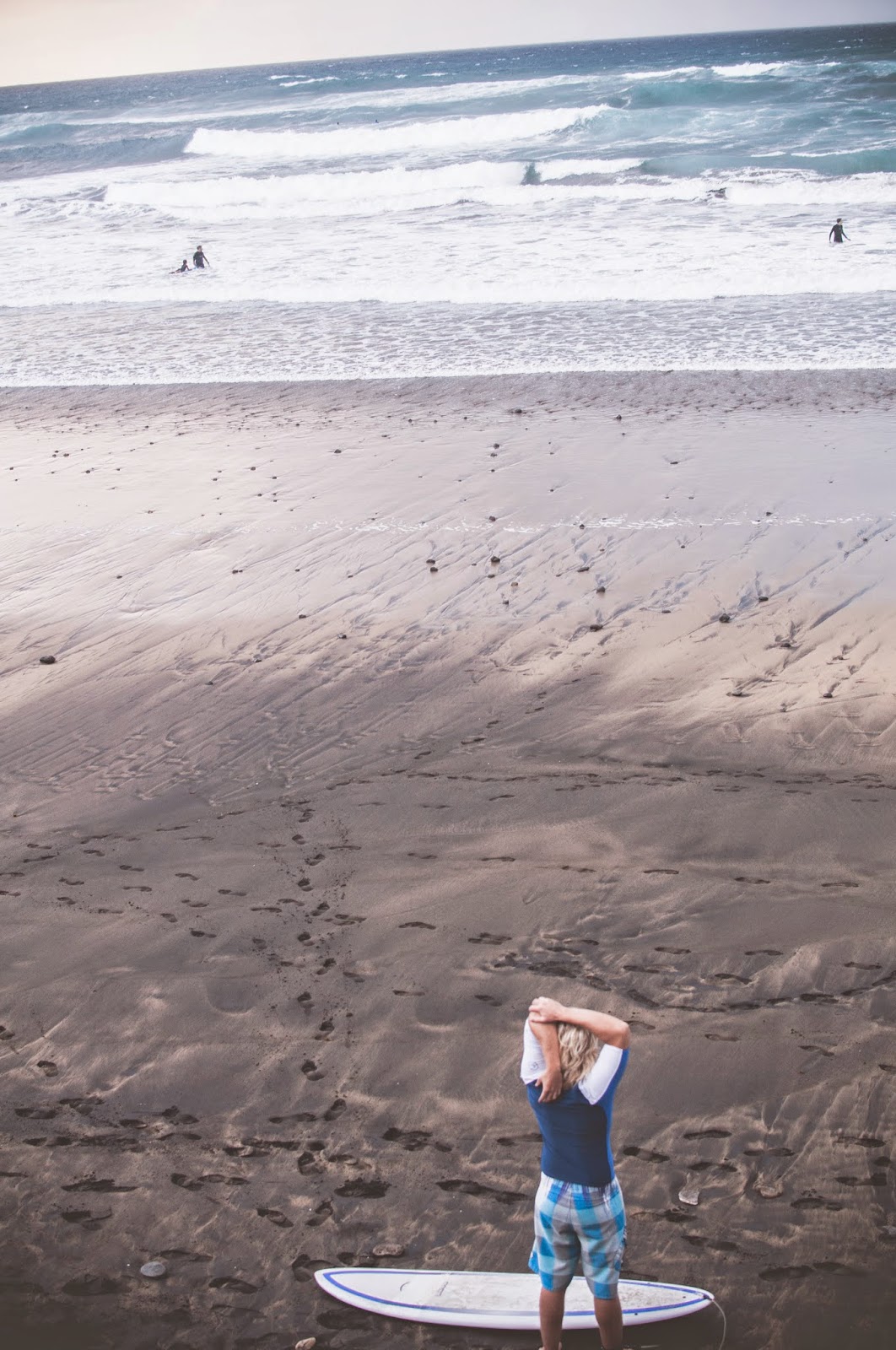 Oczywiście na koniec creme de la creme Las Palmas, czyli nauka surfingu. Nie jest to jakieś podnoszące ciśnienie profesjonalistom miejsce, ale dla osób które zaczynają jest naprawdę super. Kilka szkół do wyboru, ja polecam OCEANSIDE, która jest odrobinę droższa niż wybrana przez nas MOJO, ale zawsze na zajęciach było u nich mniej osób i przywiązywali większą uwagę do każdego ucznia, przez co ludzie robili większe postępy. W MOJO była super atmosfera i bardzo przystojni instruktorzy co kończyło się tym, że ta przystojność nie pozwalała im zajmowac sie kursantami tylko laskami na plaży. Ale to zależało od zmiany oczywiście, bo byli tacy który uczyli świetnie. Generalnie obie szkoły polecam.