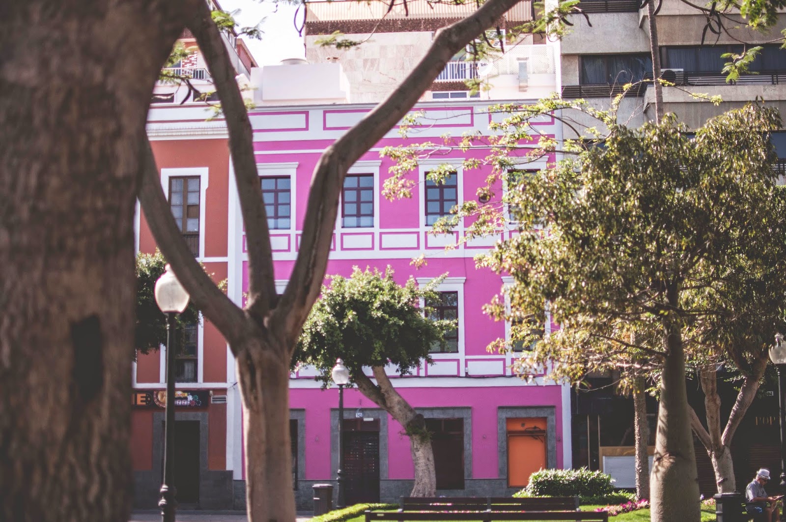 Kolorowy Plac leżący pomiędzy Las Canteras a portem, bardzo fajne miejsce do posiedzenia z książką na ławeczce, cudne kolorowe budynki i morska bryza. Na ławeczce obok na pewno zasiądzie jakiś kanaryjski starzec z uśmiechem na twarzy i kolegą, bo co mi się na Kanarach podoba to to, że wesołe tam jest życie staruszka.